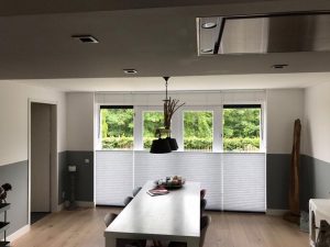 De klant gaf aan dat zij iets meer privacy in huis wilden hebben, maar wel graag zelf wilden bepalen hoeveel lichtinval er zou zijn in het huis. Daarom adviseerden wij deze mensen de Luxaflex Duette Shades van 64 mm. Met deze Luxaflex Duette Shades kan je zelf bepalen of je helemaal weinig tot geen licht inval in huis wilt, juist geen licht of zelf je privacy wilt bepalen. Dit kan door de handige en duurzame top down buttom up functie. Met de top down buttom up functie, kan je namelijk zelf bepalen op welke hoogte je de gordijnen instelt. Dus helemaal gesloten half gesloten, onder gesloten, boven gesloten of alleen in het midden gesloten.